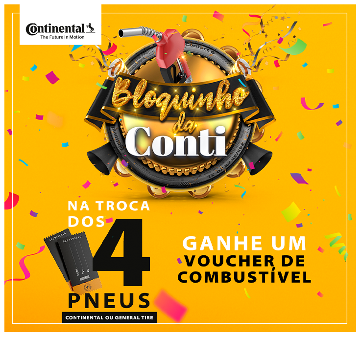A promoção “Bloquinho da Conti” já está na rua e premiará até 31 de março o consumidor que adquirir quatro pneus das marcas Continental, General Tire Grabber ou General Tire Altimax (a partir do aro 14) com vouchers de combustíveis com valores variando entre R$ 150 e R$ 300,00.