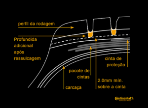 O mínimo de espessura de borracha remanescente acima da cinta de proteção, que é a cinta metálica mais externa do pneu, deve ser de 2 mm. O pneu pode ficar inutilizado caso essa medida, chamada de “undertread” (abaixo da banda de rodagem), não seja respeitada, uma vez que o pacote de cintas corre o risco de ser danificado. Normalmente, são removidos até 4 mm de borracha do fundo dos sulcos durante a ressulcagem.